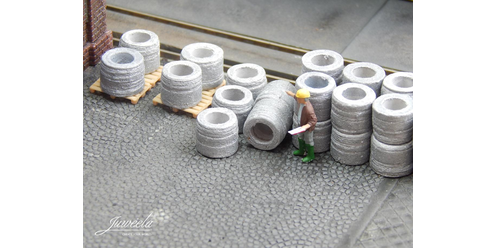 Drahtrollen (Coils) waren und sind oft beim Eisenbahn- oder LKW-Transport anzutreffen - und auf einem Diorama sehen sie auch gut aus.
